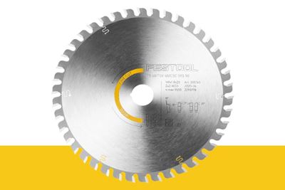 - A blade with a lower number of teeth is sufficient for separating cuts, for example on invisible edges or in coarse materials such as OSB boards, where speed is more important than a splinter-free cutting edge.