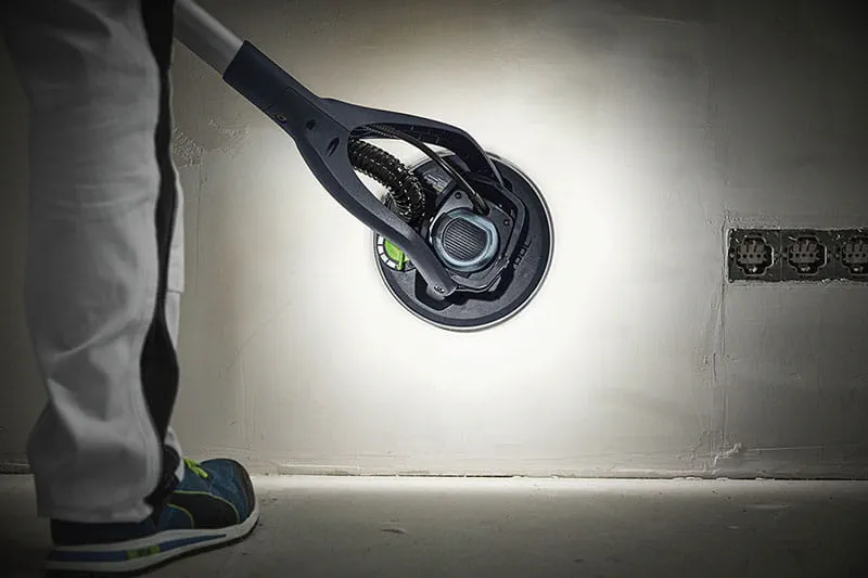 Easy, intuitive, maintenance-free – it has never been easier to prepare rooms for dry mortarless construction than with the Festool professional long-reach sander. Thanks to the optimum force transmission, sanding walls and ceilings is a work step which can be carried out quickly. This is the work of a powerful motor which is not equipped with a flexible shaft but instead has a direct drive. Thanks to their perfect ergonomics, which have been developed for manual operation, the long-reach sanders are particularly convenient to handle. This combination of power, functionality and intuitive operation ensures precise and impressive sanding results.