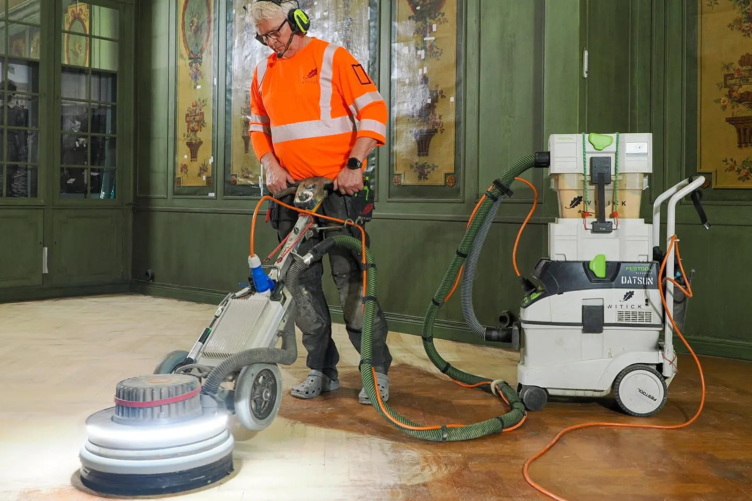 To ensure ultimate cleanliness, the Festool SYS AIR air purifier was also used to remove the fine dust suspended in the air that even the most powerful hoovers cannot fully reach when the tool is in use. With this device, the cleanliness of the room was brought up to museum-worthy standards - so that work could be carried out safely in the museum without damaging historic surfaces or artefacts.