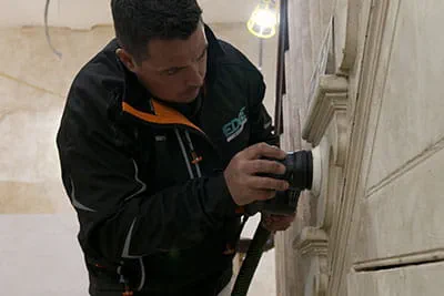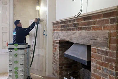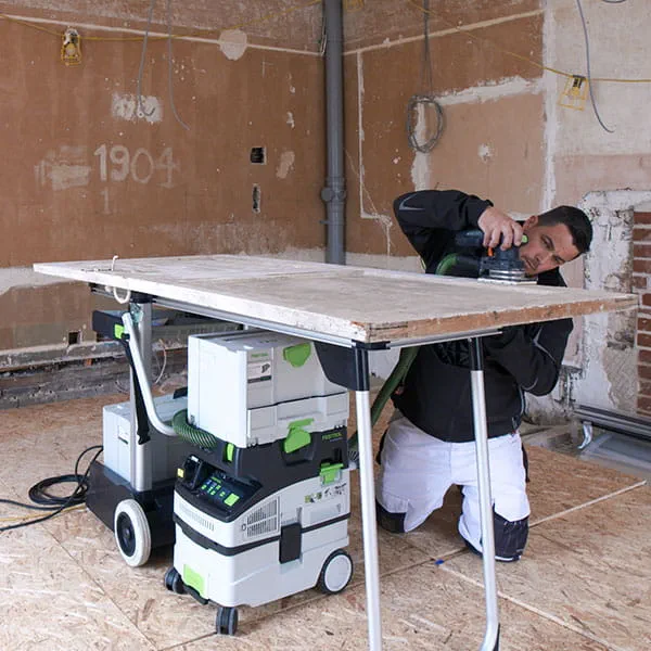Bit by bit, the old surfaces of the wooden elements in the house are removed. By the time the team have started packing up their tools, it's already growing dark. Lee invites us over to his house for dinner. "Thanks to the dust extraction system, my work is not only cleaner, but also quicker," he remarks while we're heading back. "Because of that, I have a little more free time to spend with my family and can get involved with my children's hobbies. The time that we spend together is the most valuable to me." This becomes clearer once we arrive at Lee's home, where his whole family is already gathered together around the dining table. While we're eating, Lee shows us pictures of one of the next projects he's got lined up – an old manor house. Everyone's in agreement that with the right tools by their side, Lee and his team are bound to have yet another great success with this project.