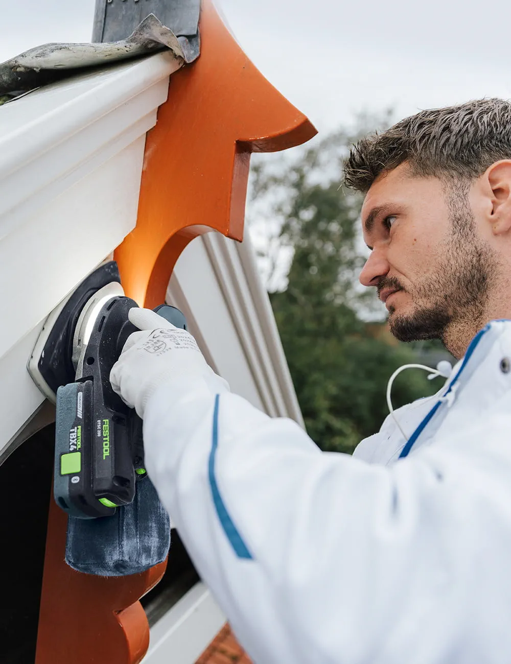 Dutch painter Luke de Jager does a lot of sanding. With various Festool cordless sanders and always with dust extraction. Often for days on end. In all weathers.