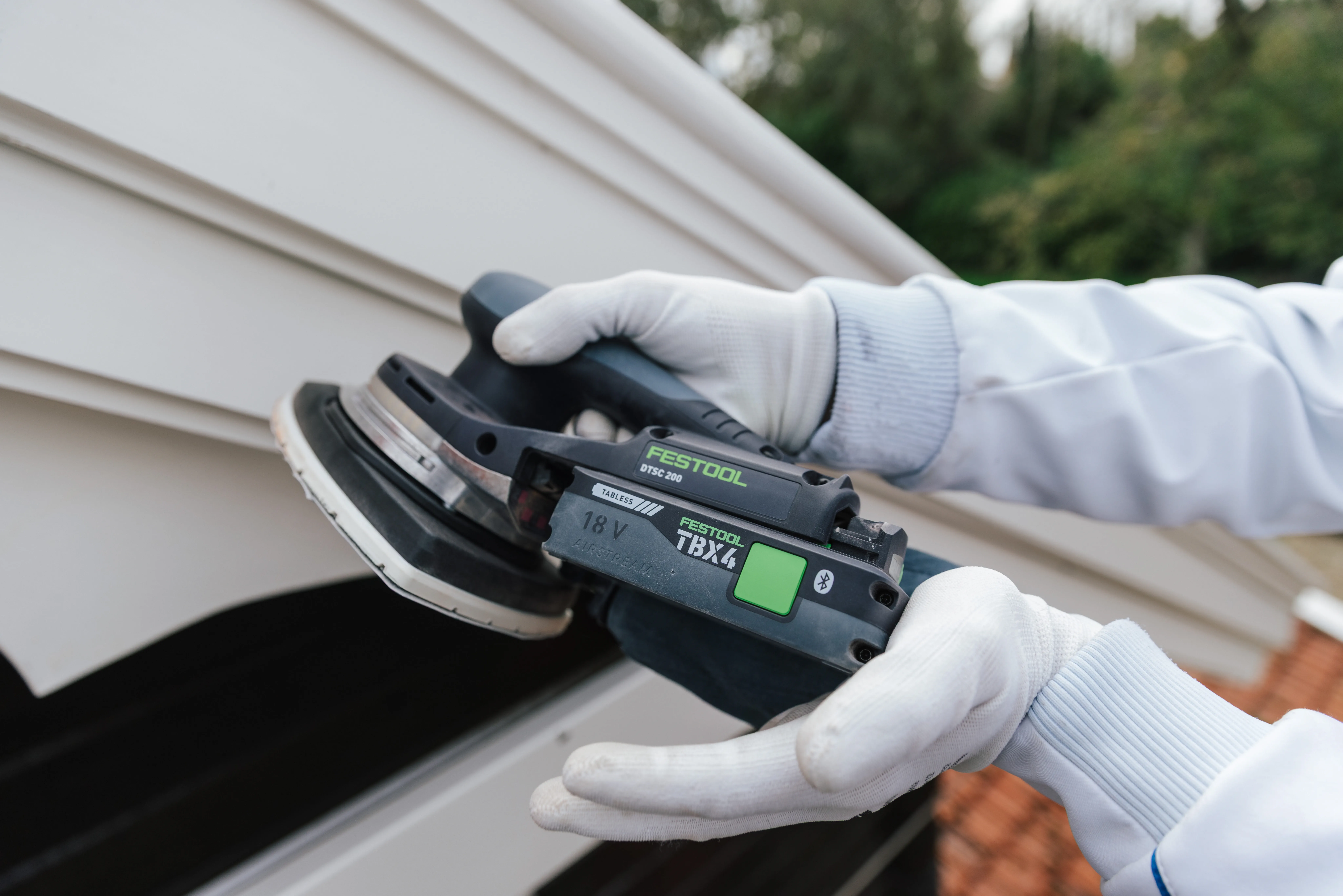 Luke has internalised that surface preparation internalised, is crucial for painting work. crucial for painting work. And that's exactly what Festool sanders are made for. Luke particularly appreciates that Festool is always thinking one step thinking one step ahead. "The DTSC 200 Delta sander really surprised me. really surprised me. The fact that you can use the new delta sandpaper can be used three times is great. The Light module is also very helpful." A nod of approval for the new Tabless TBX 4 battery from him. Especially on the he benefits from the fact that the cordless sanders run for longer and can be charged even faster. can be charged even faster.