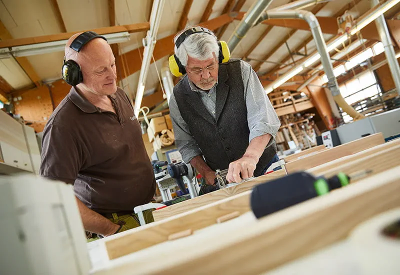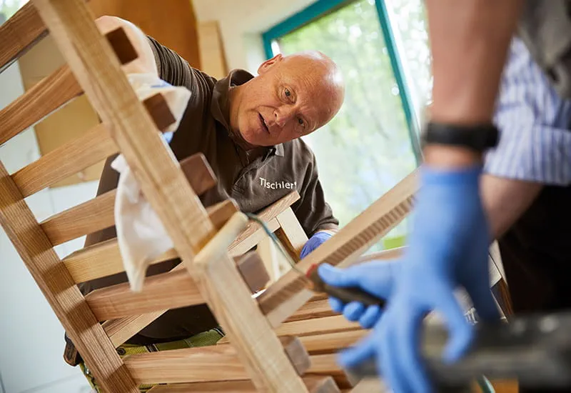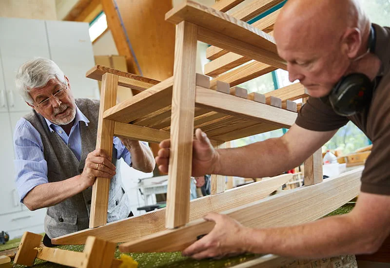 "At first, I didn't quite know how I would design and build such a relatively complex piece of furniture with someone who has no experience in the field," joiner Karsten Schillings remembers the initial phase of the project. "Building a chair is a challenge in and of itself, but a rocking chair is even more ambitious." Nevertheless, the seasoned joiner kept his cool. After all, he has a lot of experience with workshop visitors: He likes to say that they provide the "imagination" to his handiwork. He regularly offers laypersons an insight into the demanding life of a professional joiner at his workshop in Münster.