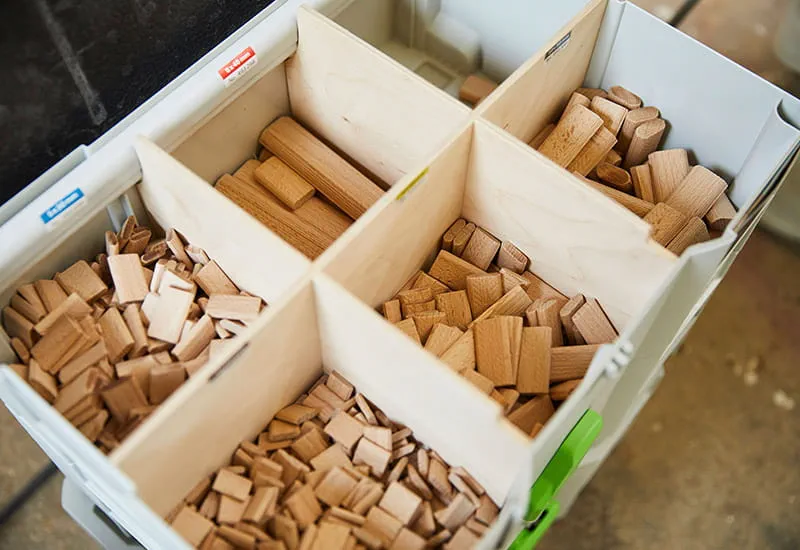 "I decided on a very linear solution and intended the DOMINO routers to have a central role in building the chair," says Schillings and explains: "The two joining machines are ideal for precisely routing the many connecting joints for the dowels. That is particularly important, because the connections have to be very sturdy and stable without any fittings. Using the DF 500, we created nearly all the connections with corresponding dowels of varying sizes. And for the connections between the chair and the rocker, which bear a particularly high load, we used the DF 700 with larger 14 mm dowels." In addition to the DOMINO jointers, the two men also used the OFK 500 Q-Plus R3 edge router to round off the rocker elements, as well as the compact TXS cordless drill. "An ideal tool set-up for this project," according to Schillings: "With this combination, we achieved the best possible results. After all, we don't just want to finish a chair; we want to build something to last a lifetime."
