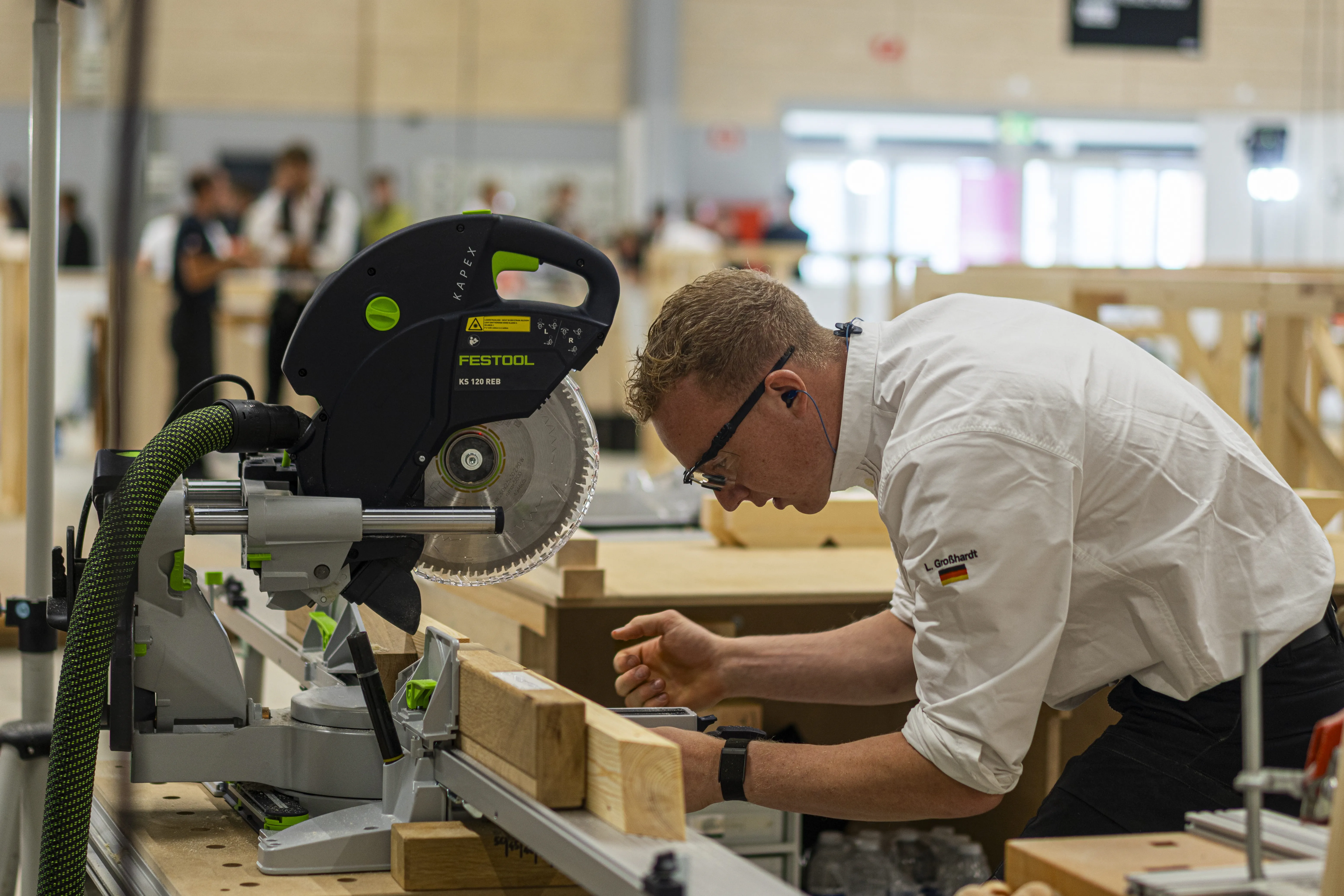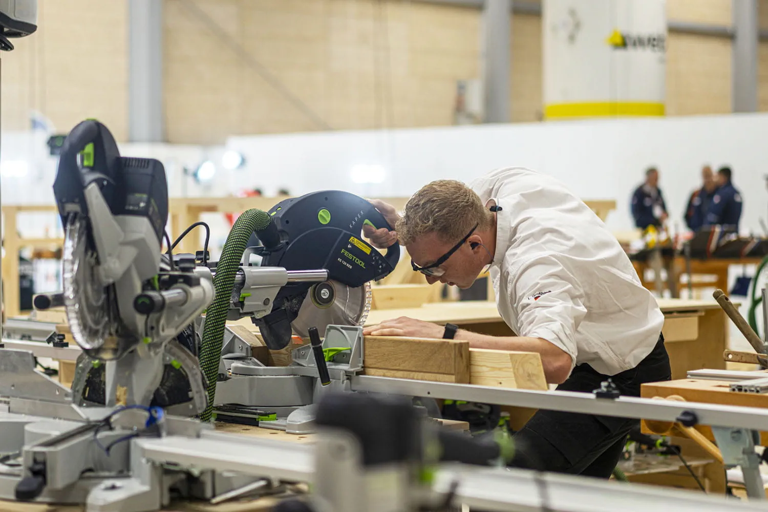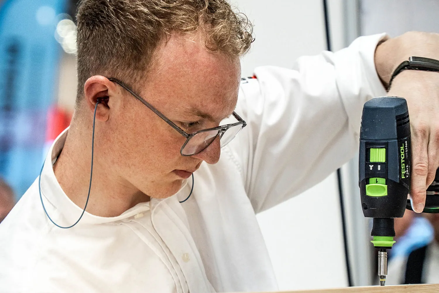 When the doors of the competition halls in Herning, Denmark open at EuroSkills, you are immediately immersed in a different world: Adrenalin is in the air, the faces of the competitors show the utmost concentration. This is accompanied by the rhythmic whirring of the machines and the smell of wood and sawdust. Craftsmanship and talent are condensed into just a few metres, in which the participants work in the sweat of their brow to complete highly demanding projects within a given time frame. All they have at their side are their power tools. Indispensable helpers on the way to the winner's podium.