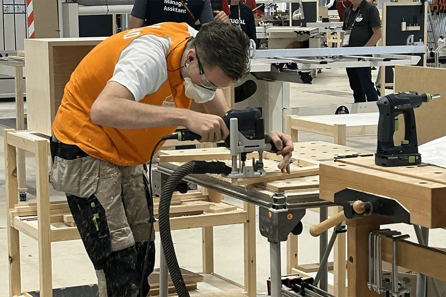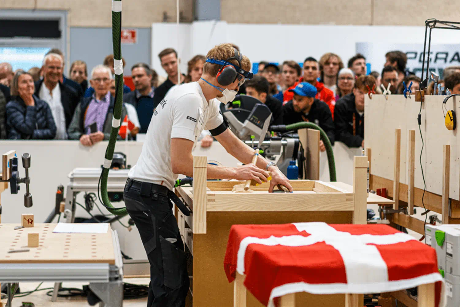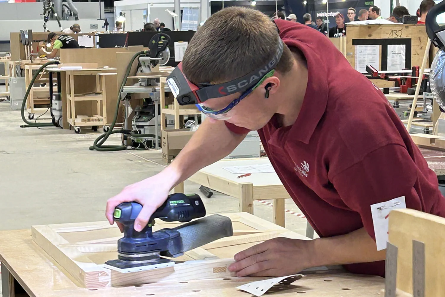 When the doors of the competition halls in Herning, Denmark open at EuroSkills, you are immediately immersed in a different world: Adrenalin is in the air, the faces of the competitors show the utmost concentration. This is accompanied by the rhythmic whirring of the machines and the smell of wood and sawdust. Craftsmanship and talent are condensed into just a few metres, in which the participants work in the sweat of their brow to complete highly demanding projects within a given time frame. All they have at their side are their power tools. Indispensable helpers on the way to the winner's podium.