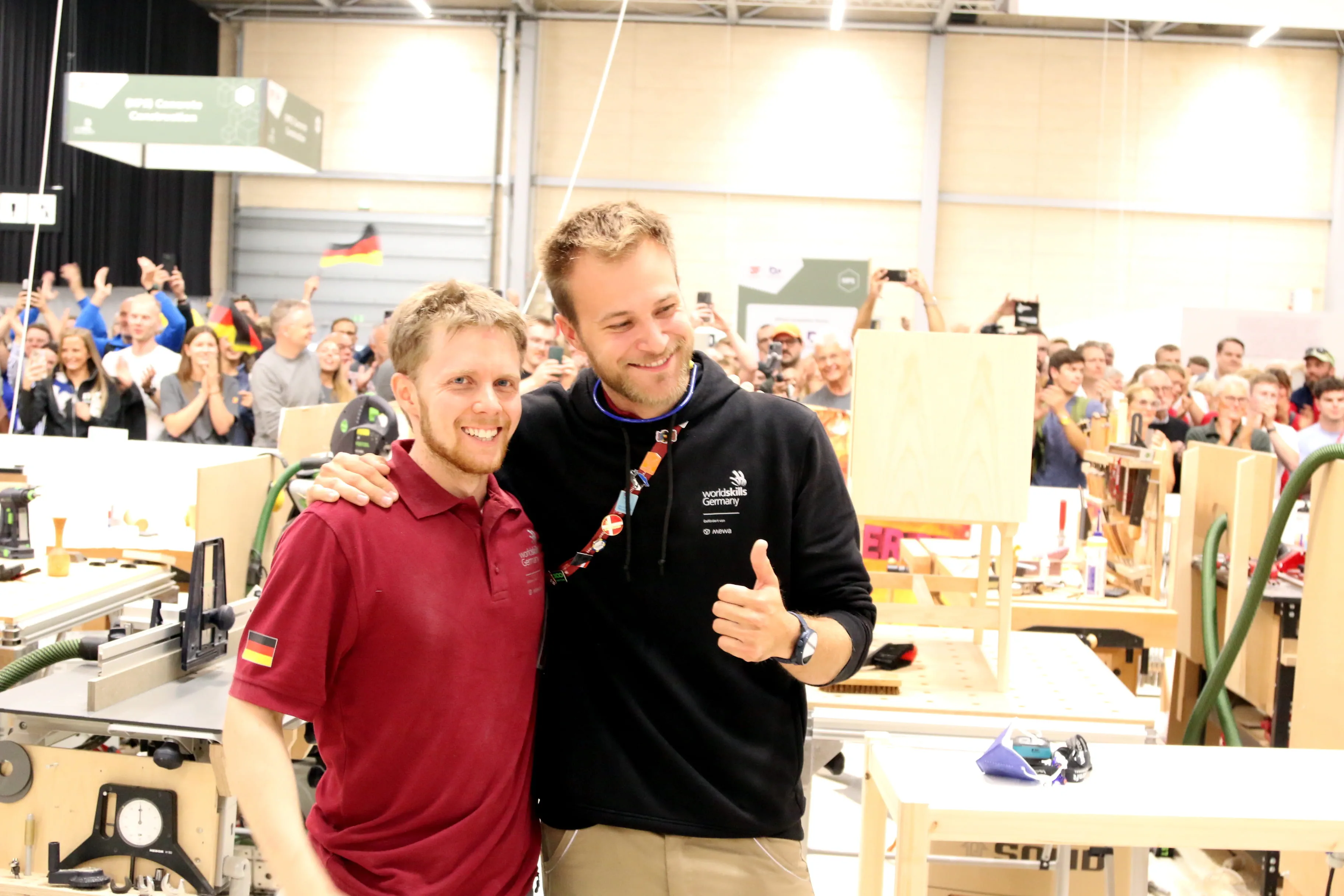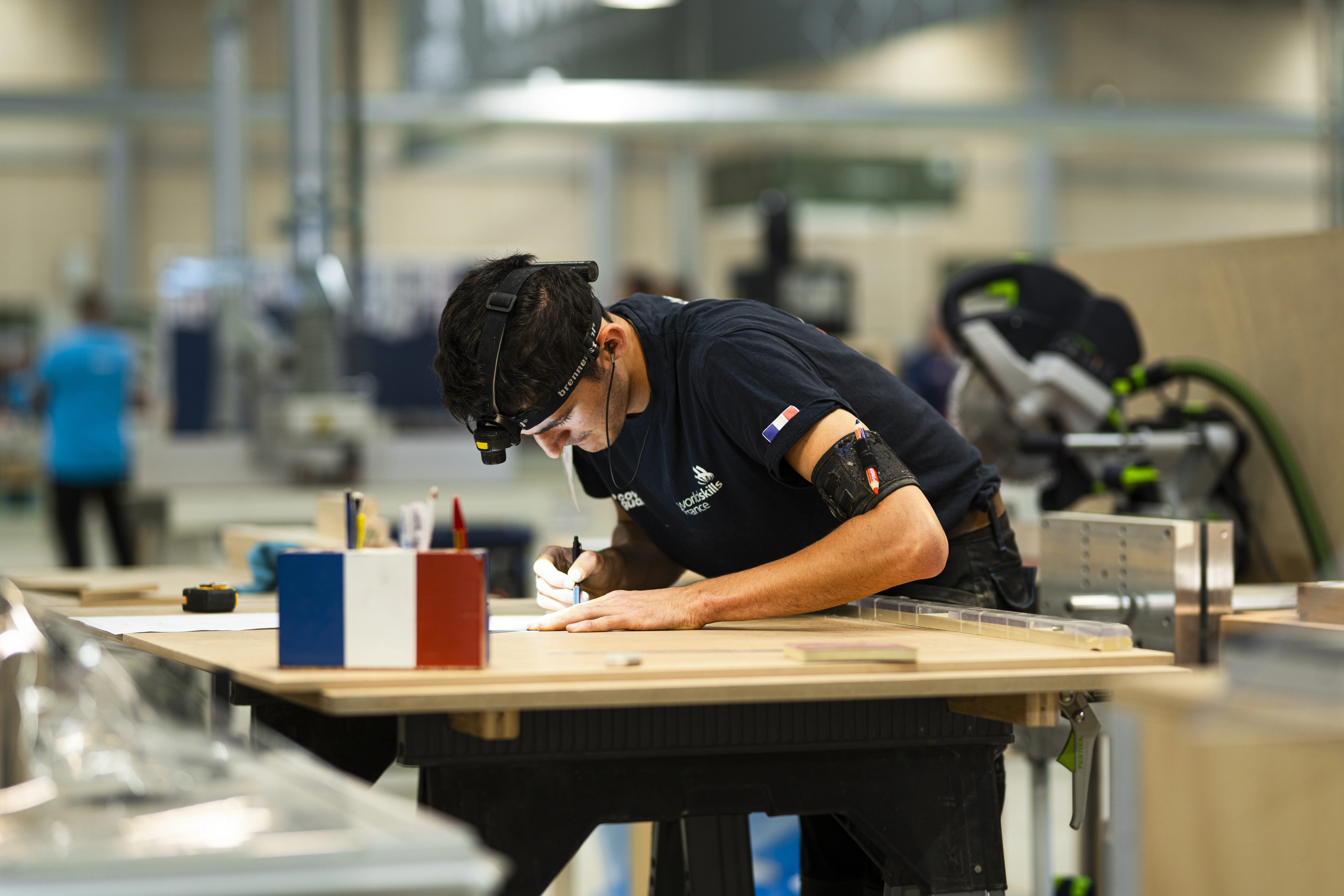 "I've never felt so much tension in the air", one visitor told us, while the German carpenter Linus Großhardt, completely relaxed, inspected his work with his trainer 20 minutes before the final bell, pure adrenalin prevailed in the final minutes of the other carpentry, construction and cabinetmaking competitions. You could literally feel the pulse of the feverishly working participants.
