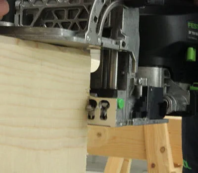 The second milling groove is made on the post end. When doing this, ensure that the stop pin is positioned on the first routing edge. The first milling groove serves as an alignment aid and saves time-consuming marking.