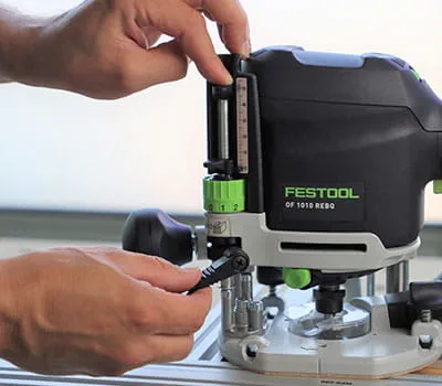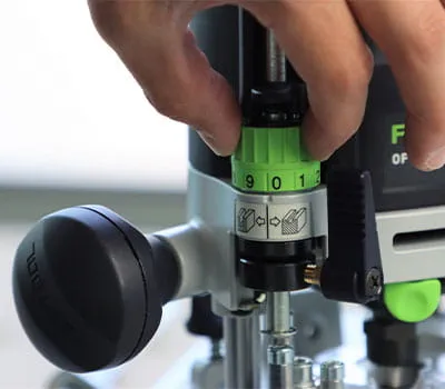 When required, the routing depth can be corrected to the nearest tenth of a millimetre using the fine adjuster, if it does not fit exactly after the first test rout.