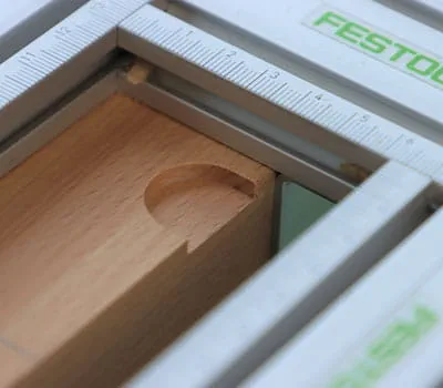In order to minimise splinters in the edge area, a small section is first routed on the right of the template.