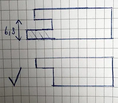 So that we can insert the new wooden floorboard from above, only cut away the lower overhang of the groove. In our case, to a cutting height of 6.8 mm.