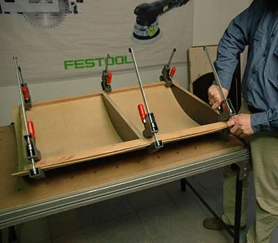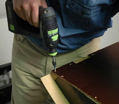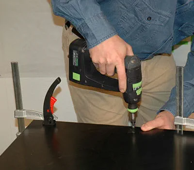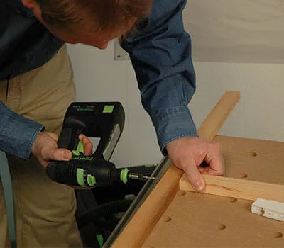 Once the base structure is screwed together, insert the interior panels (positions 2, 7 and 13). Clamp the panels and drill the holes for the screws. Use SPAX screws (3.5 x 20 mm) to screw the panels to the base structure.