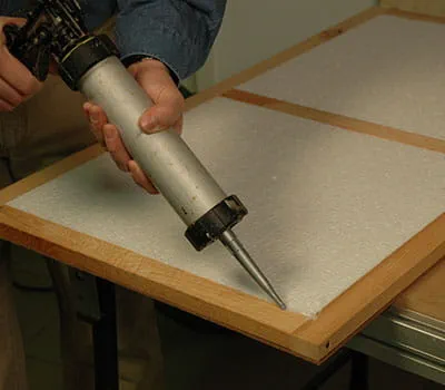 When all of the interior panels and the base panel (position 1) have been screwed together, cut the Styrofoam insulation and place the sheets into the framework. Mark the positions of the base structure onto the exterior panels (positions 6 and 12). Use polyurethane adhesive to stick these to the rest of the wall. The individual parts of the wall should be braced with clamps.